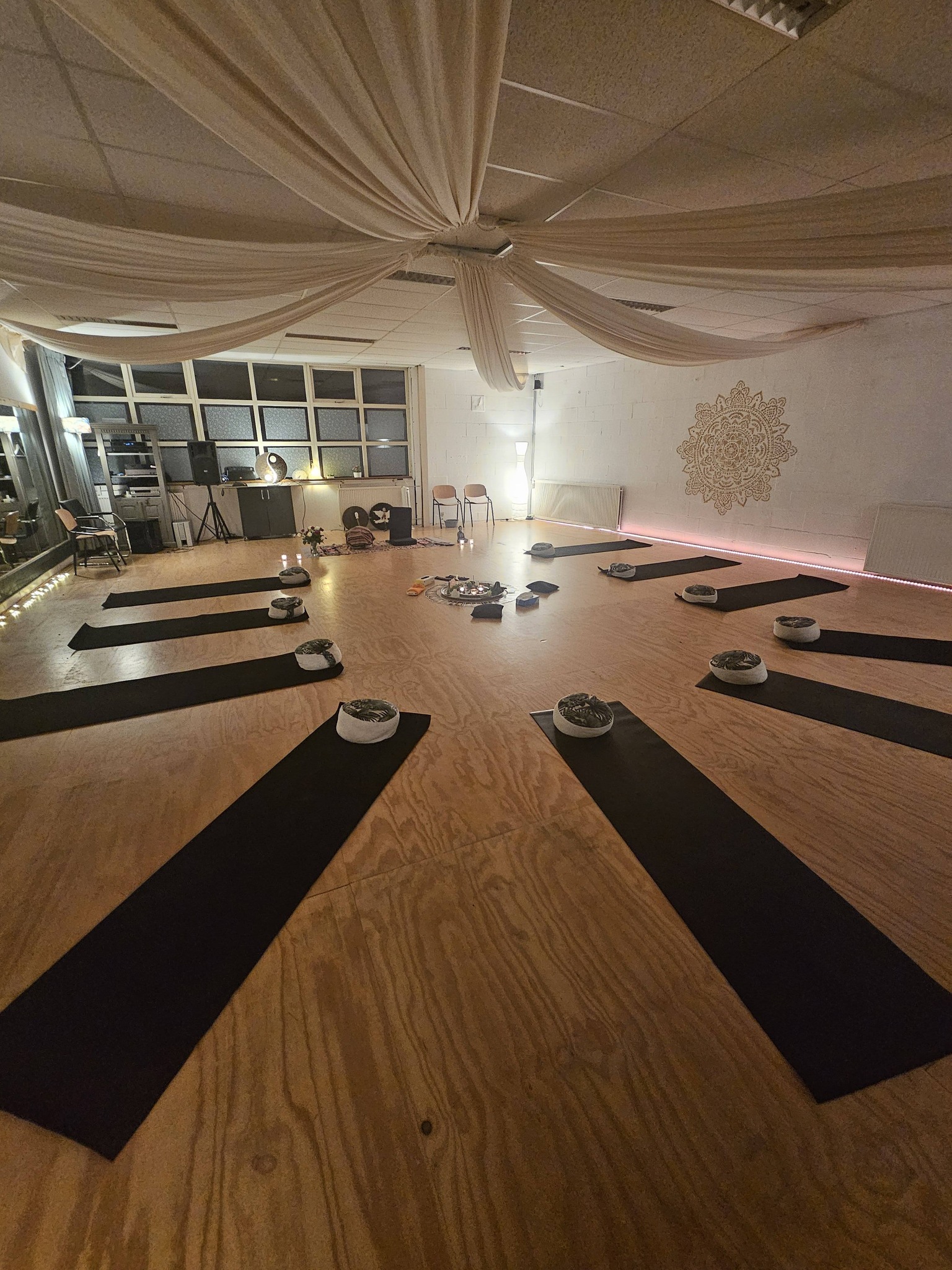 Vervolgens mag je in alle rust weer terugkomen in de ruimte en in je lichaam en als je zover bent drinken we wat en maken we ruimte woorden te geven aan je ervaring. Dat laatste ben je niet verplicht maar kan je soms helpen je ervaringen verder te integreren en bekrachtigen.